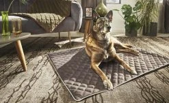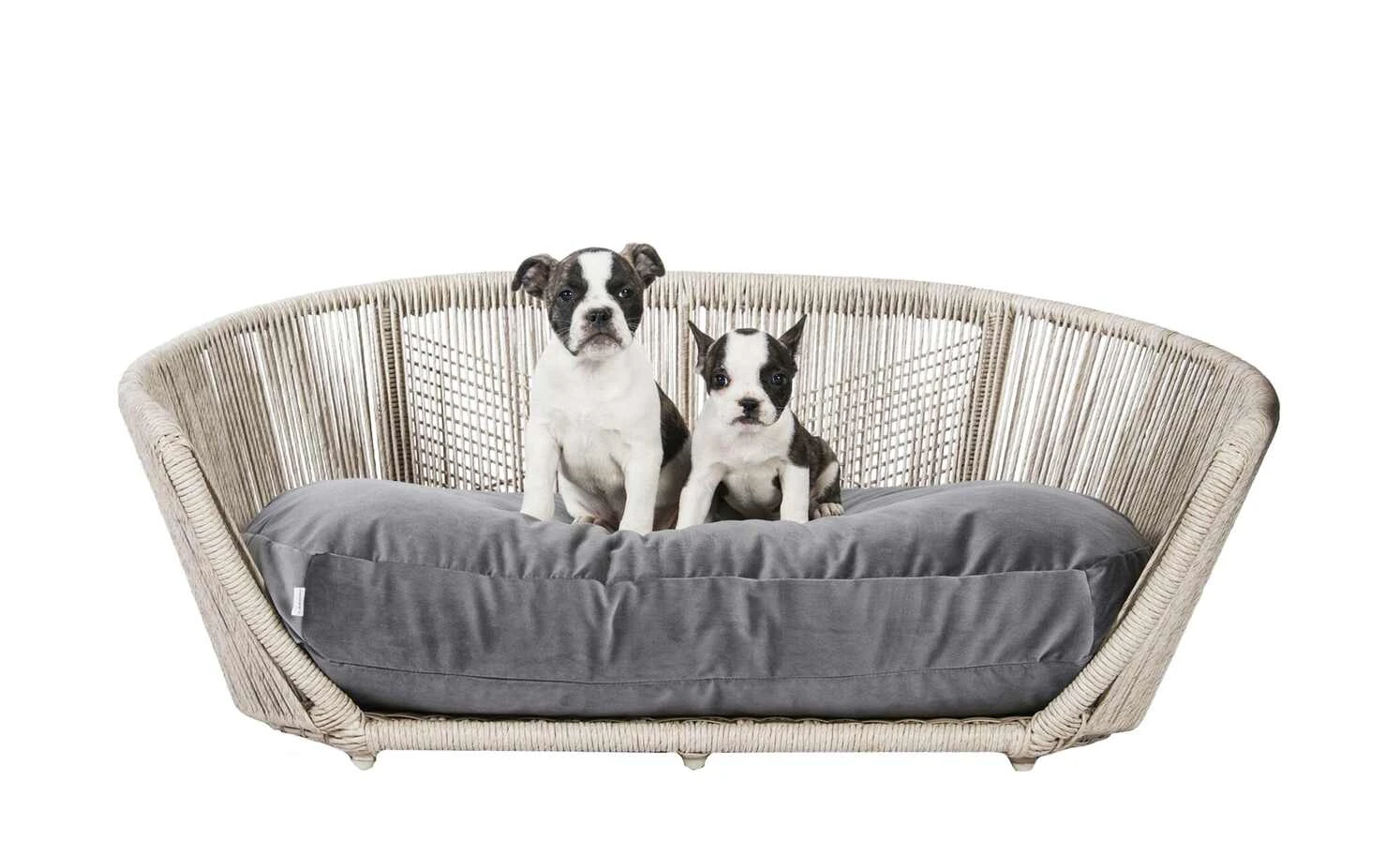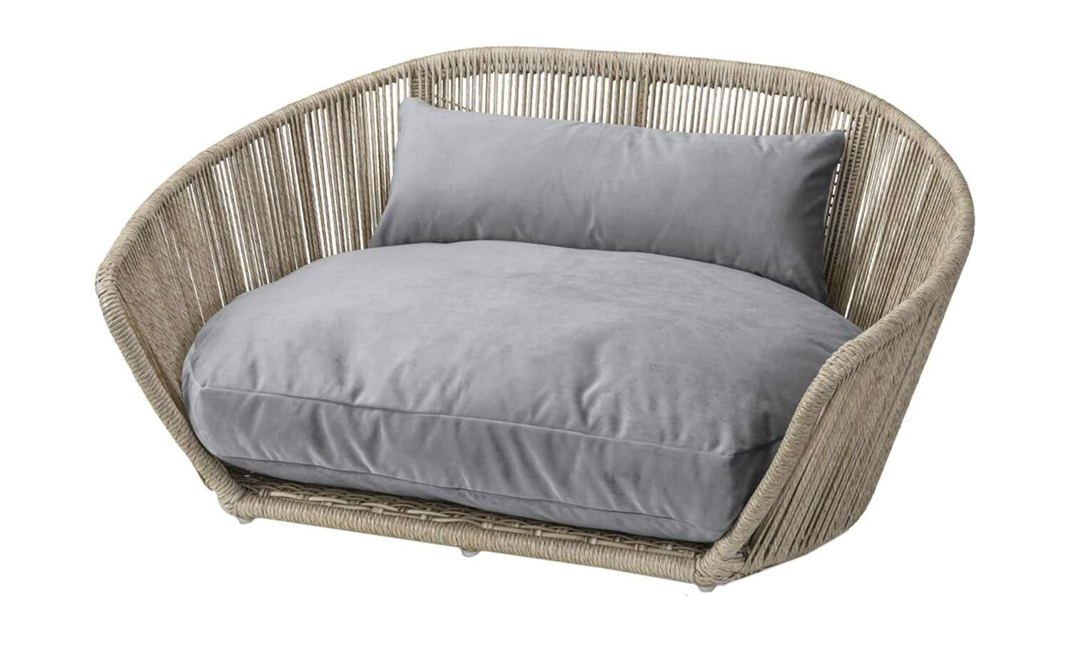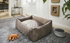 Design-Hundebett mit edlem Bezug aus anschmiegsamen Samt – sehr robust und pflegeleicht.