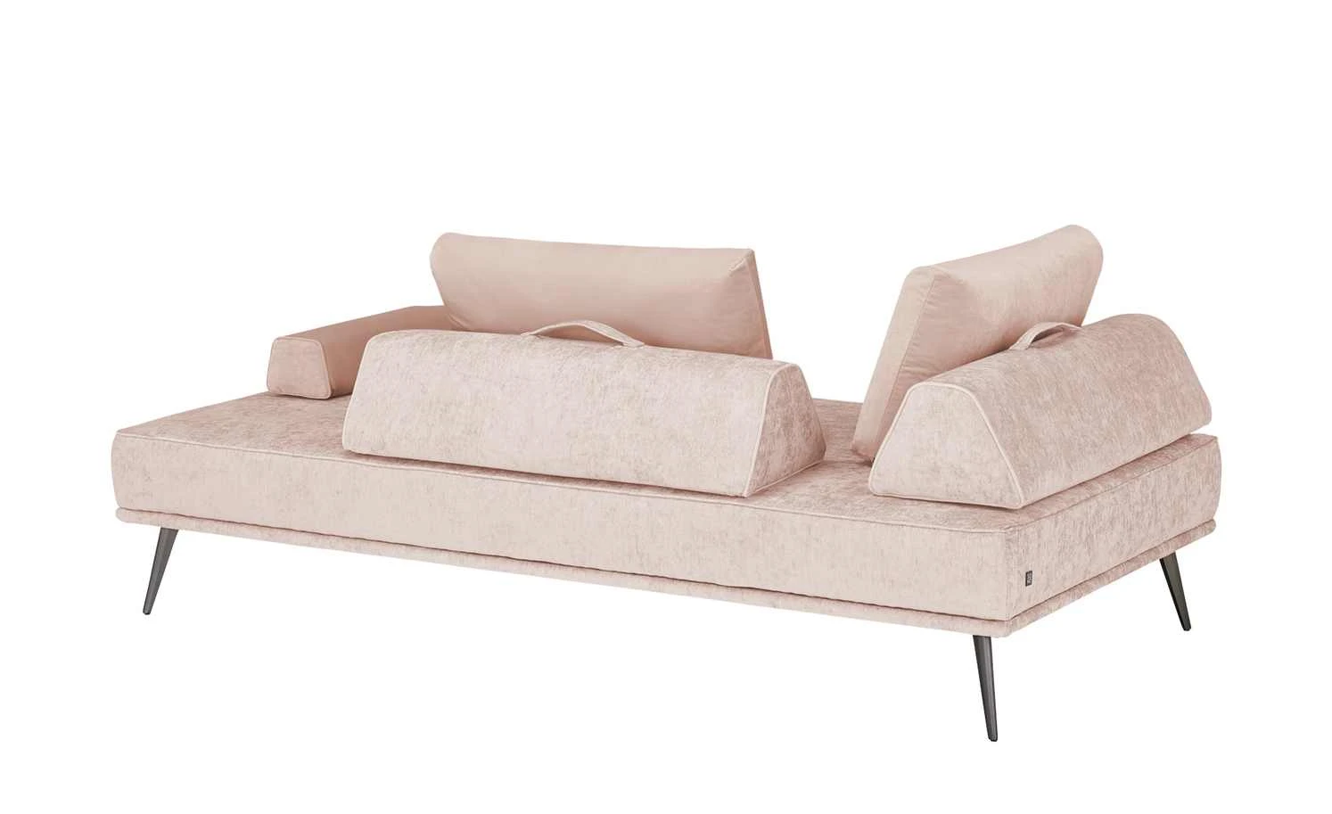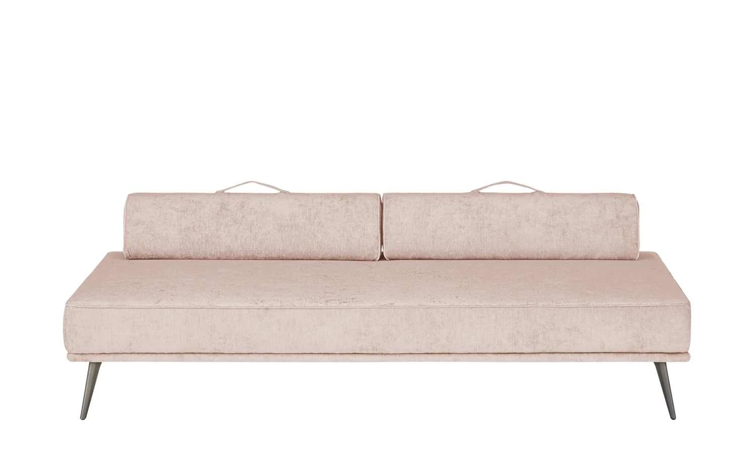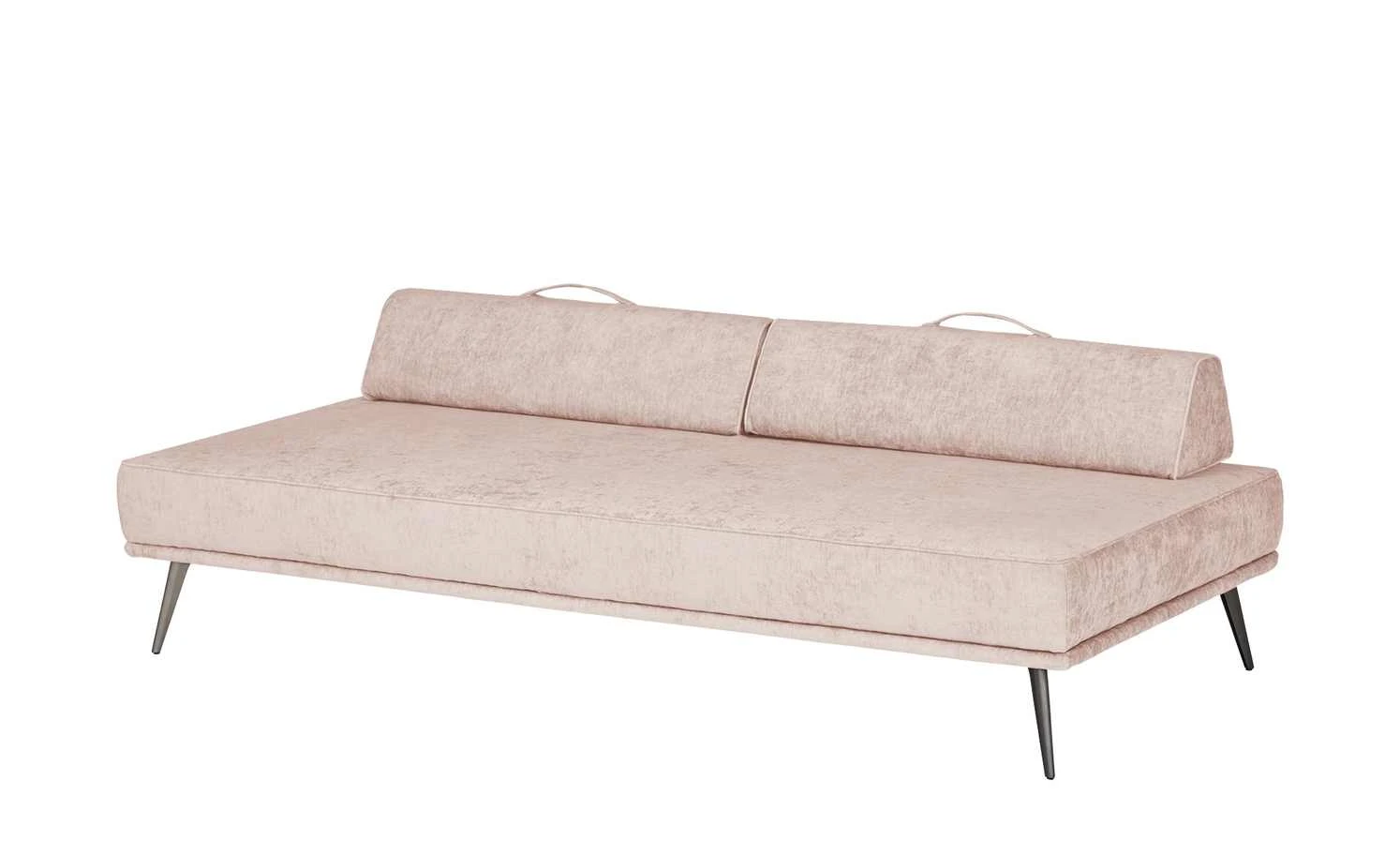 Machen Sie die Tagesliege Alexa zu Ihrer ganz persönlichen Relax-Oase. Die edle Polsterliege ist mit einem weichen Veloursstoff bezogen und mit einem umlaufenden Keder verziert. Zwei frei platzierbare Kissen in Trapezform sind mit dem gleichen Stoff bezogen und lassen sich als Armlehnen, Rücken- und Nackenkissen verwenden. Durch rutschfeste Applikationen bleiben die Kissen sicher an ihrem Platz. Sie besitzen Griffe zum leichteren Umplatzieren und ebenfalls einen Keder, der ihre Trapezform betont. Drei weitere Zierkissen harmonieren mit dem helleren Farbton der Liege. Die Tagesliege Alexa passt durch ihr edles Erscheinungsbild in zahlreiche moderne Einrichtungsstile und wird schnell zum neuen Lieblingsmöbelstück. Arrangieren die Sie die Kissen ganz nach Ihren Wünschen und nutzen Sie die Tagesliege außerdem als Sofa oder gemütliche Schlafgelegenheit.